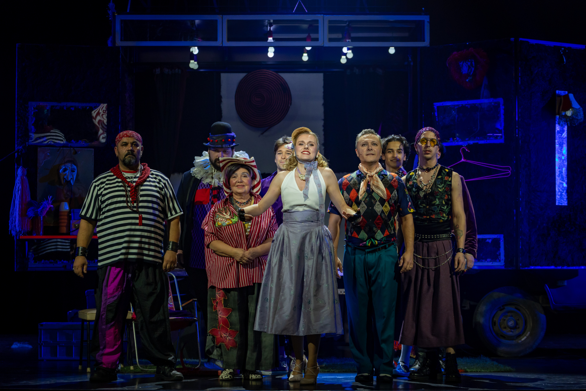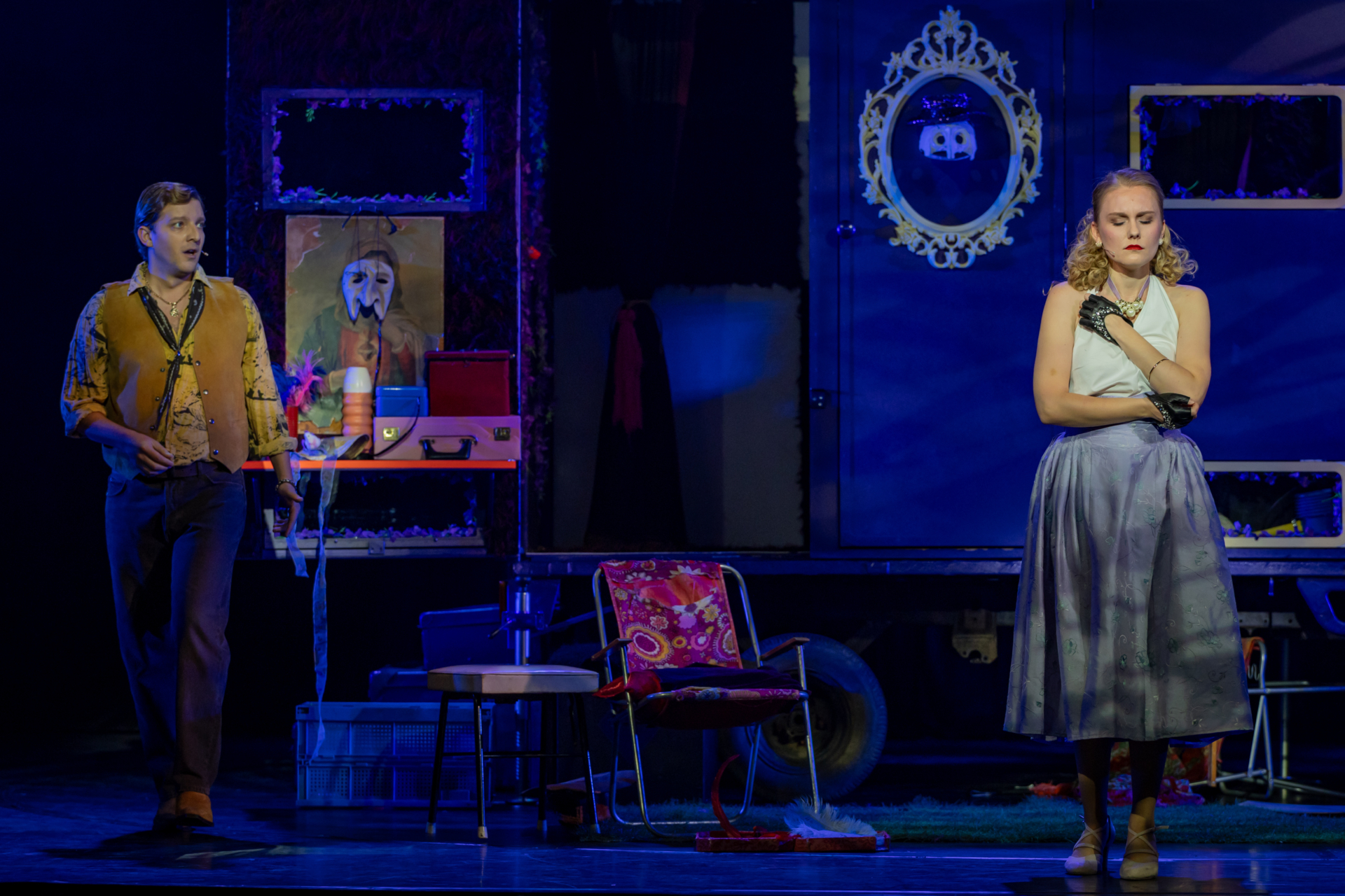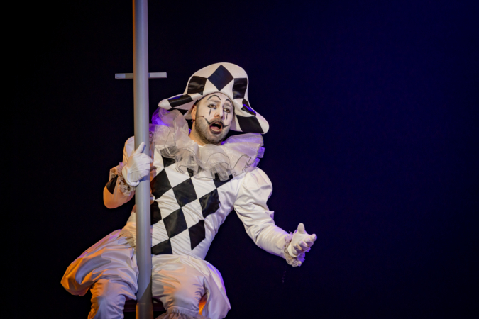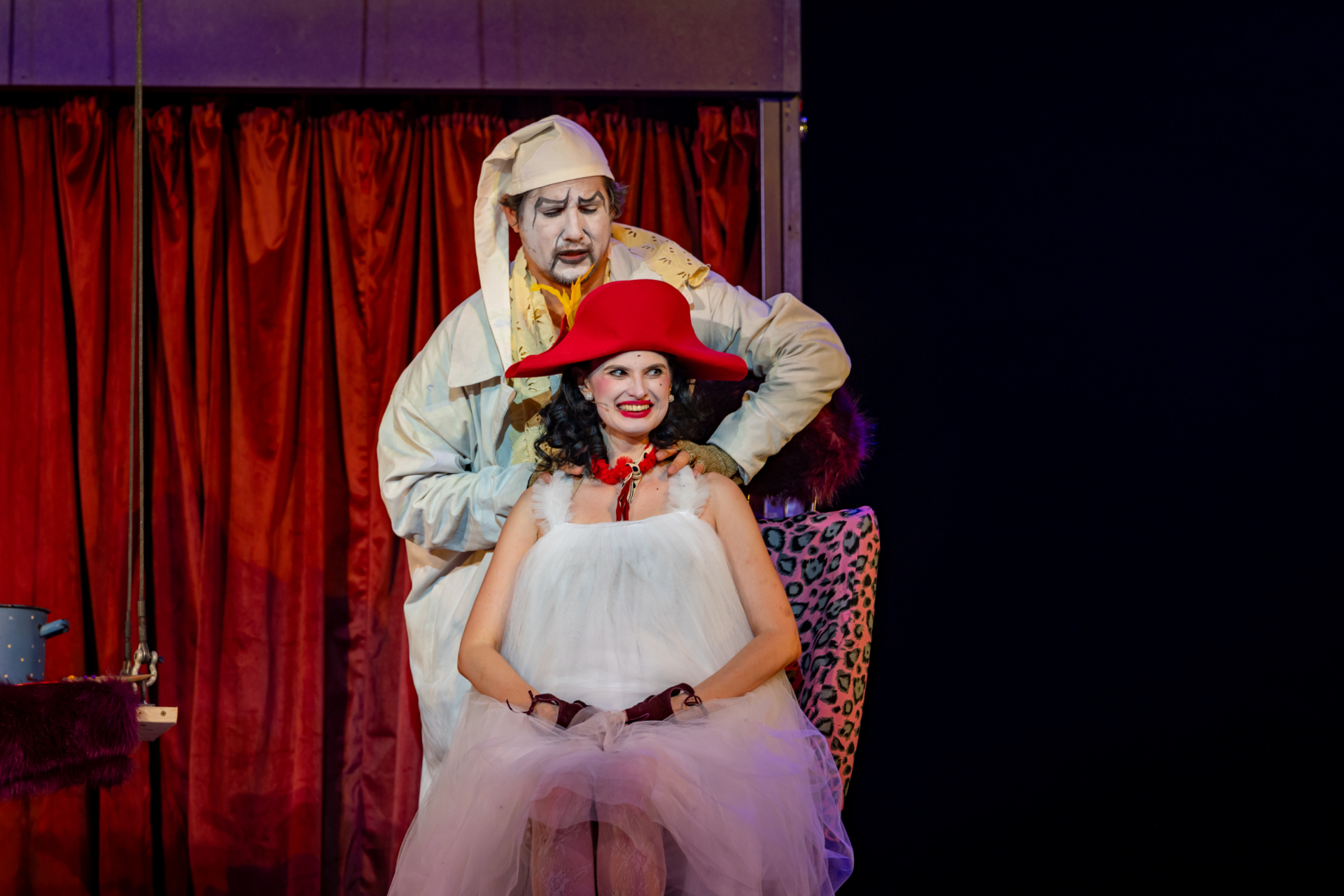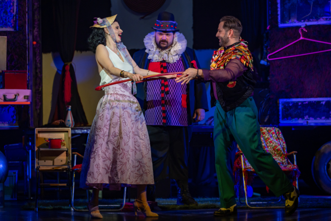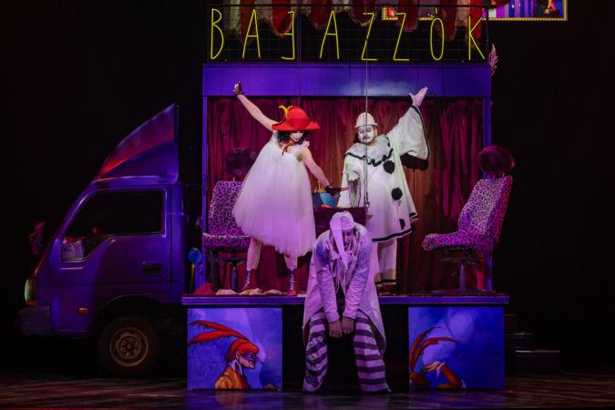 Mindenki lázasan készülődik, a nézők már türelmetlenül várják, hogy végre kezdetét vegye a produkció. A commedia dell’arte stílusú előadás cselekménye szerint Bajazzó felesége, Colombina és Arlekin titkon egymáséi, de Tádé is vágyik a nőre.