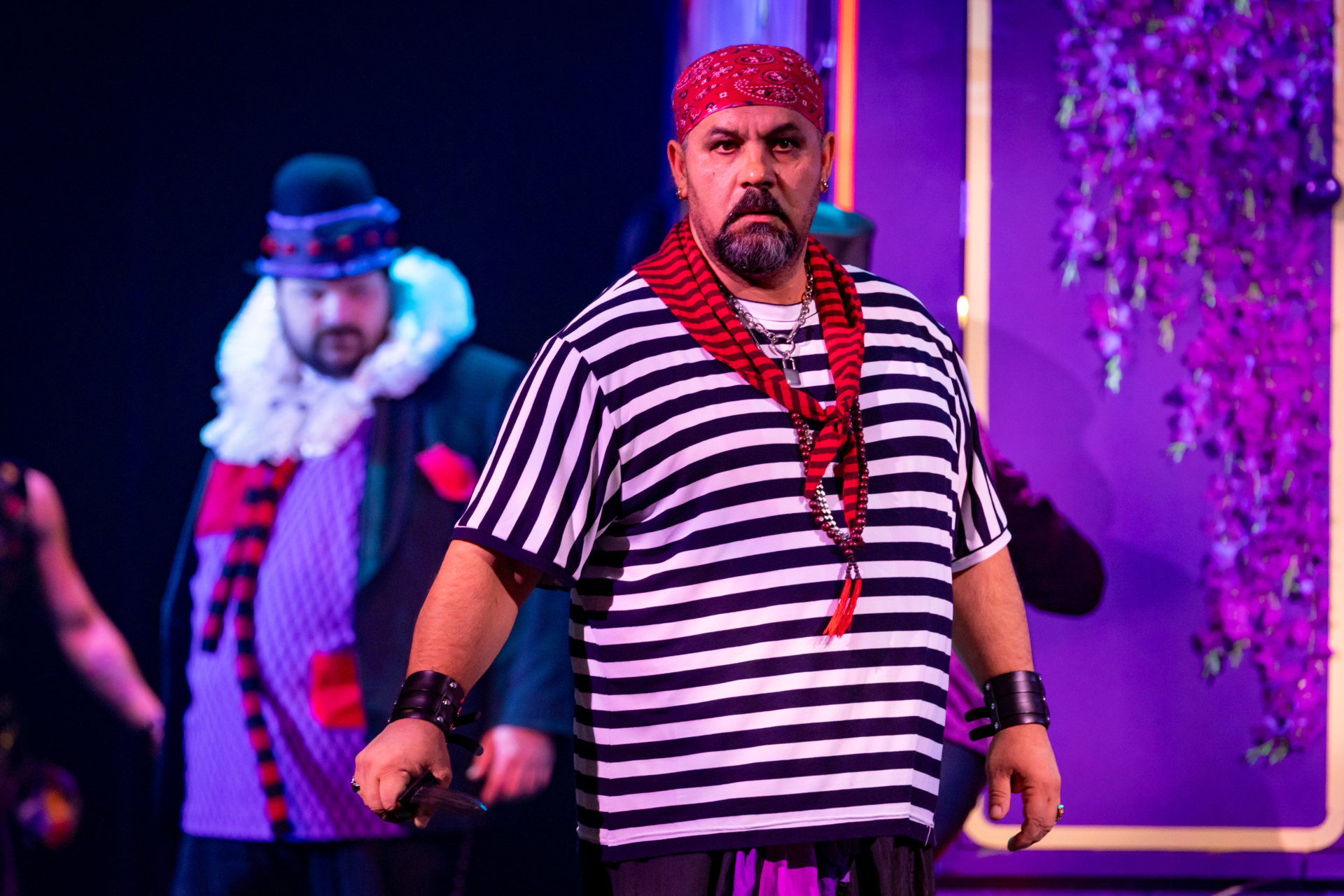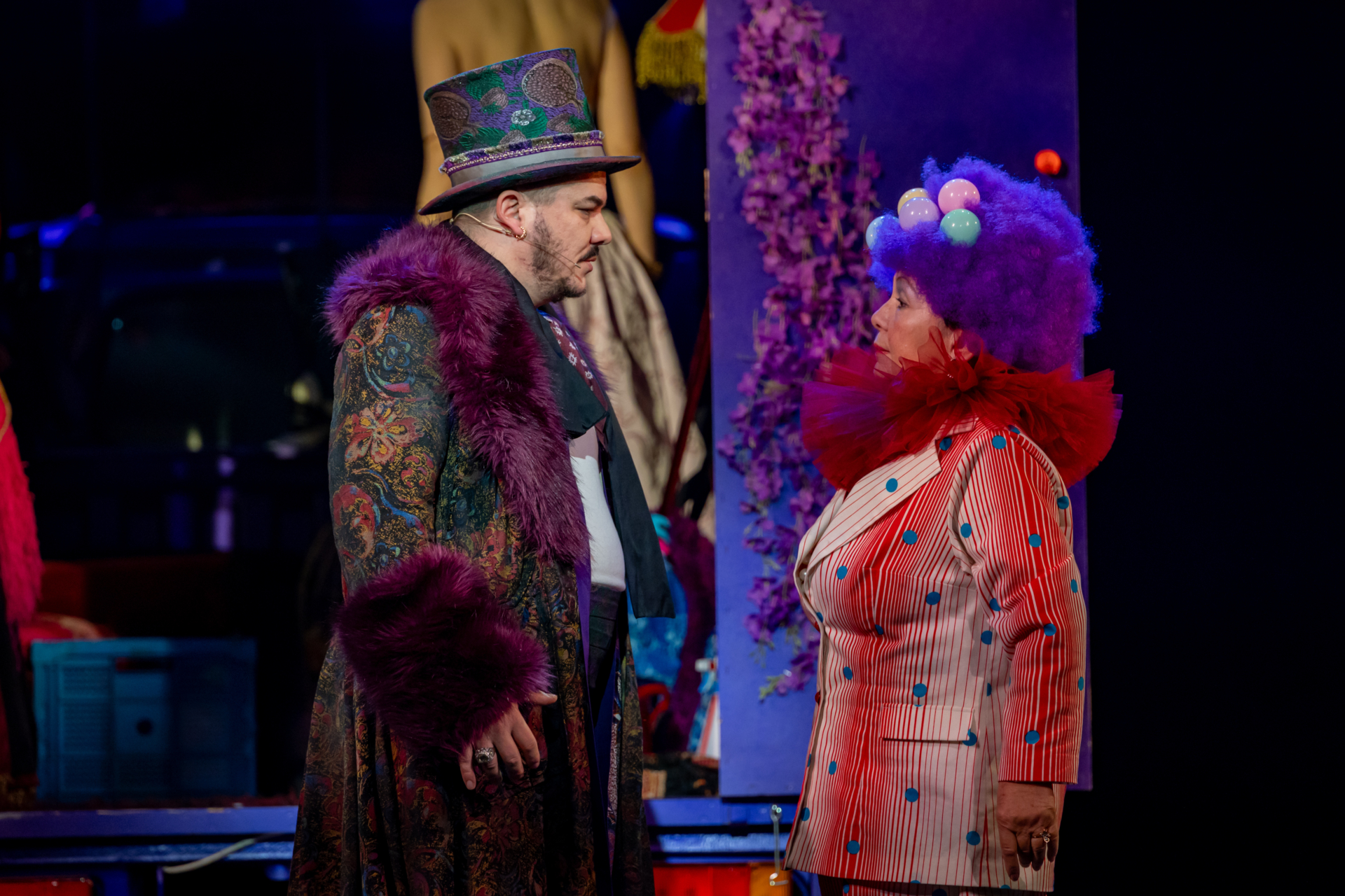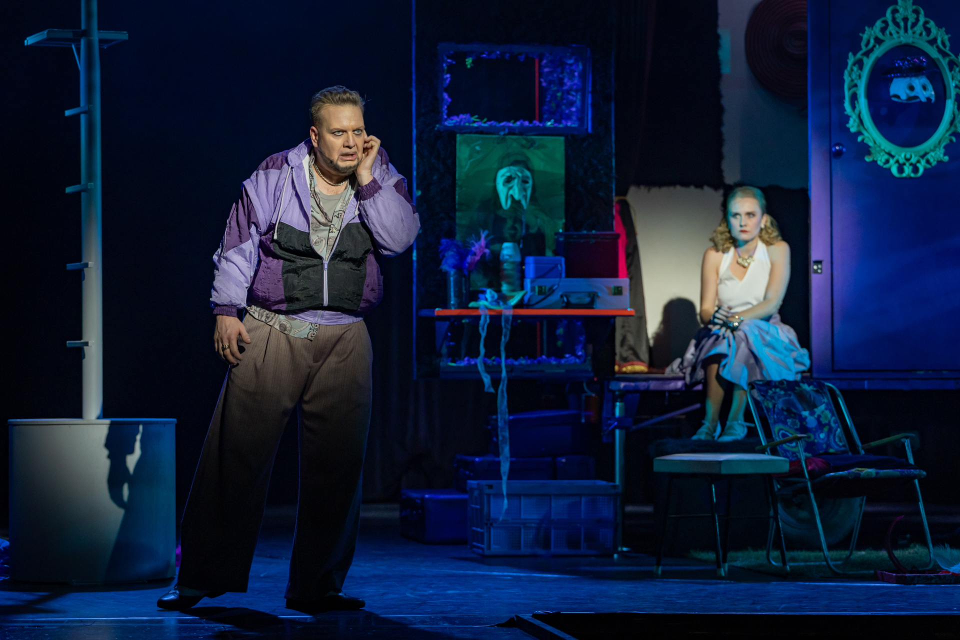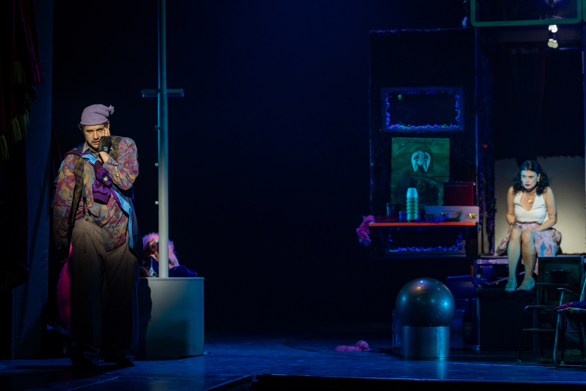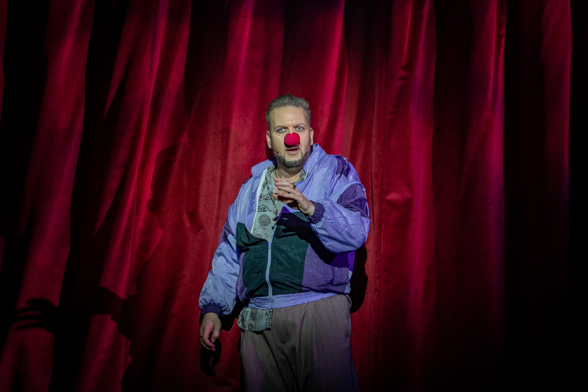Mindenki lázasan készülődik, a nézők már türelmetlenül várják, hogy végre kezdetét vegye a produkció. A commedia dell’arte stílusú előadás cselekménye szerint Bajazzó felesége, Colombina és Arlekin titkon egymáséi, de Tádé is vágyik a nőre.