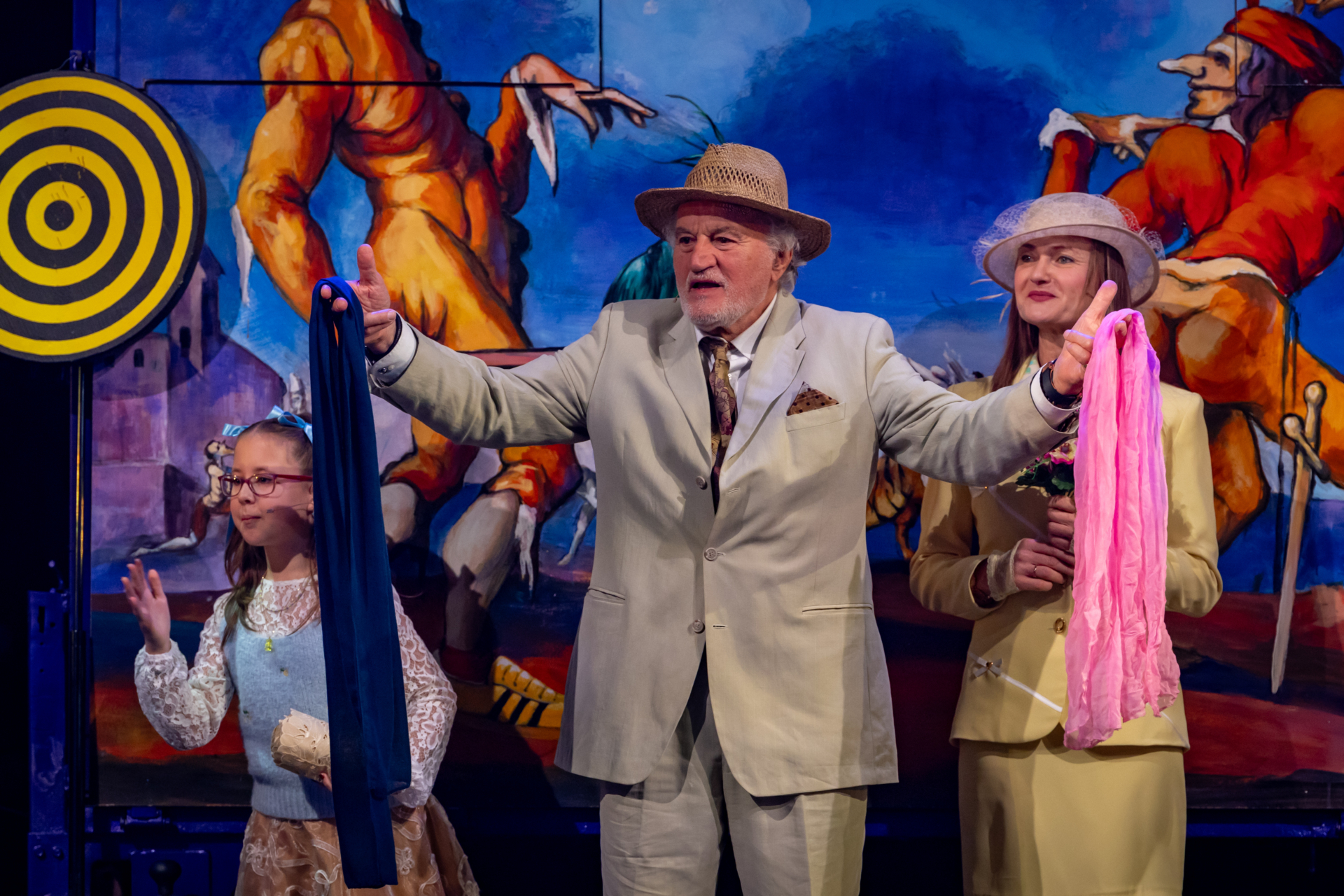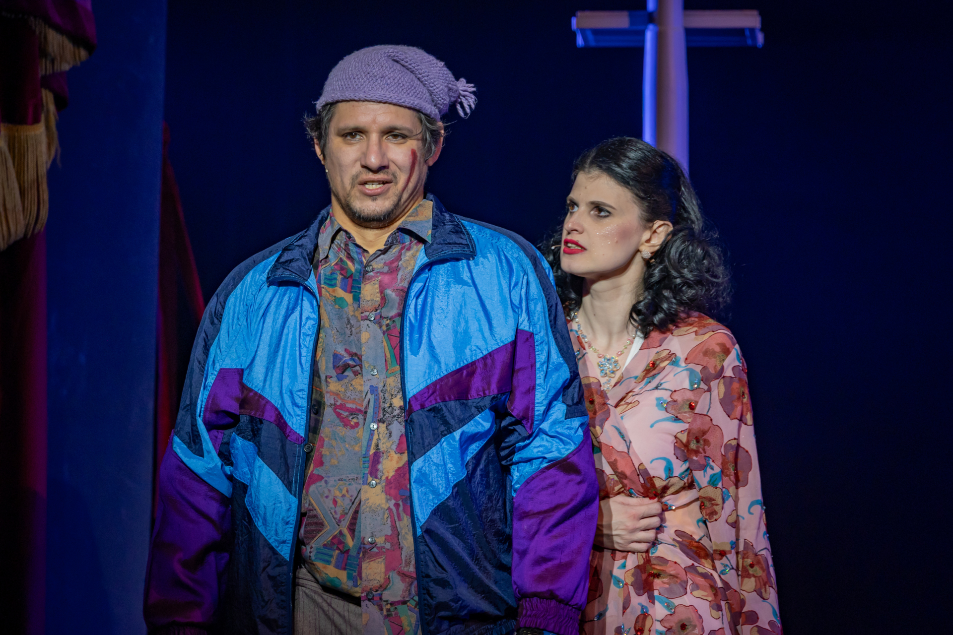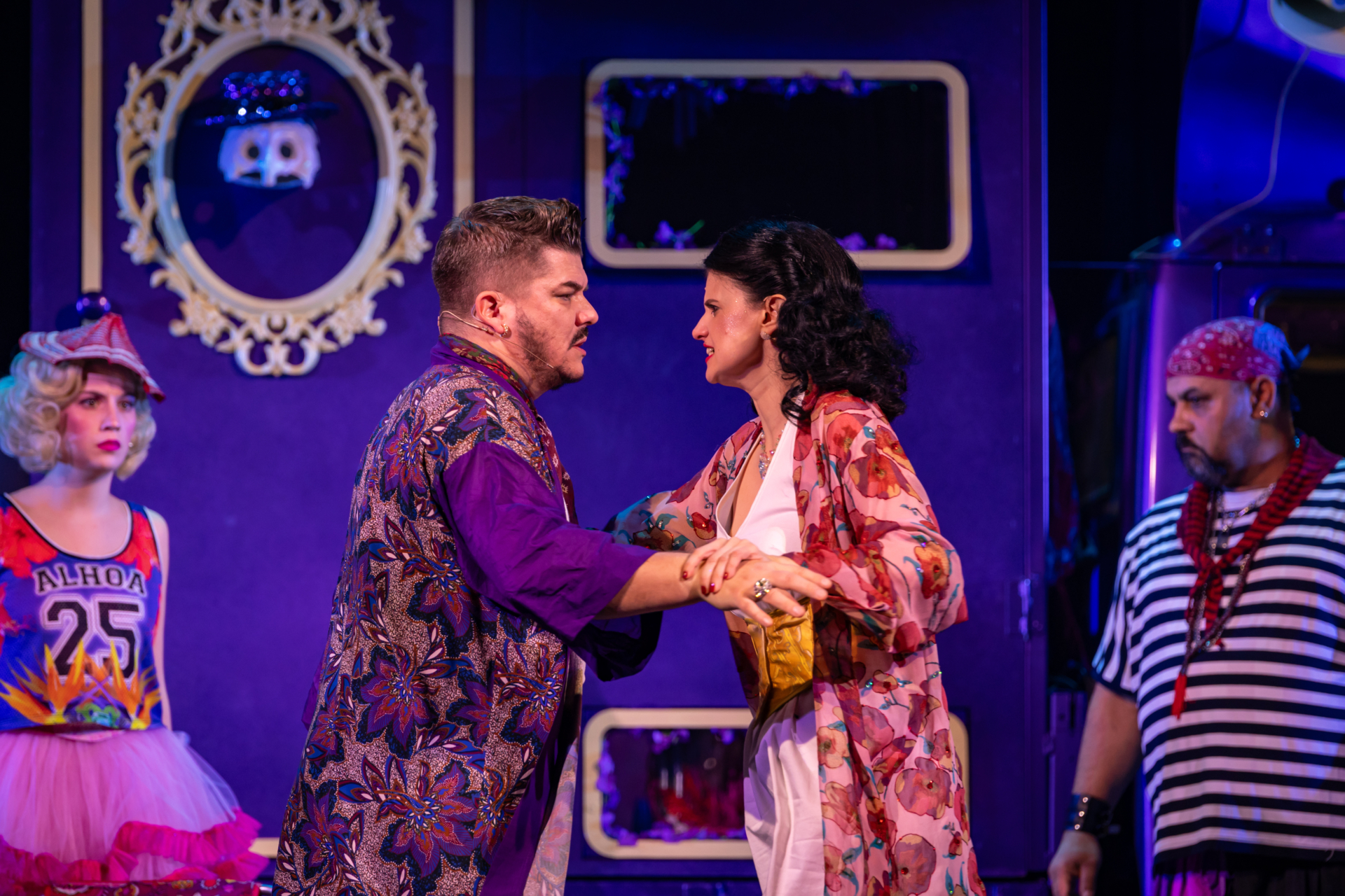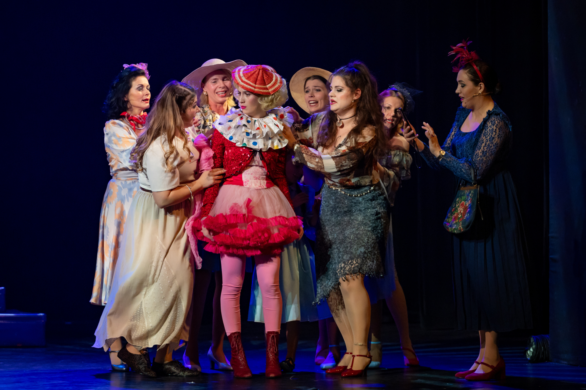 Mindenki lázasan készülődik, a nézők már türelmetlenül várják, hogy végre kezdetét vegye a produkció. A commedia dell’arte stílusú előadás cselekménye szerint Bajazzó felesége, Colombina és Arlekin titkon egymáséi, de Tádé is vágyik a nőre.