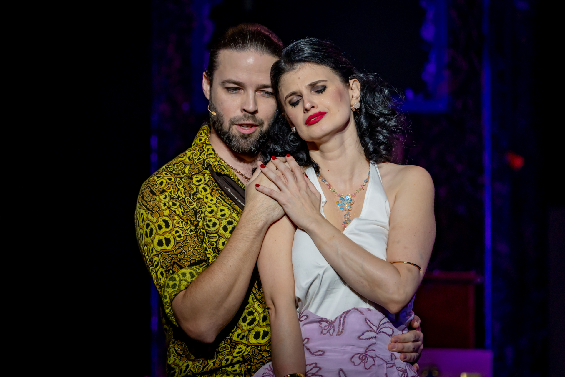 Megérkezik Silvio, a férfi, akit Nedda szívből szeret. Szenvedélyes találkozásuk alkalmával megtervezik szökésüket, de Tonio meglesi őket, és Canióért rohan. A férj dühösen ront a helyszínre, de a társulat tagjainak segítségével Silvio időben elmenekül. Canio követeli, hogy Nedda nevezze meg szeretőjét, ám a nő makacsul hallgat. A többiek szétválasztják őket, Canio pedig magára marad. Kétségbeesetten ölti magára jelmezét, s közben mérhetetlen fájdalmát igyekszik festék mögé rejteni.