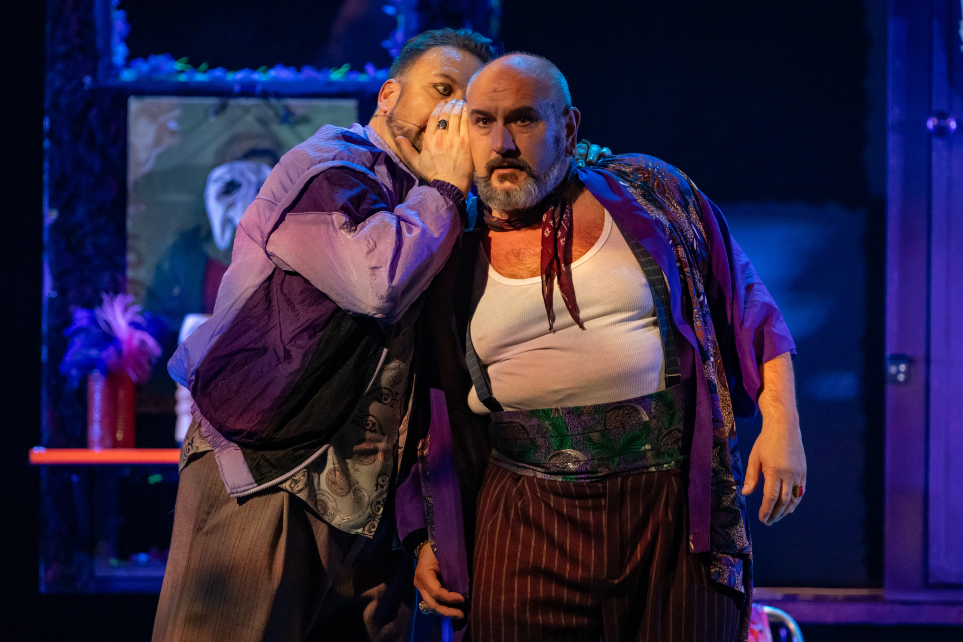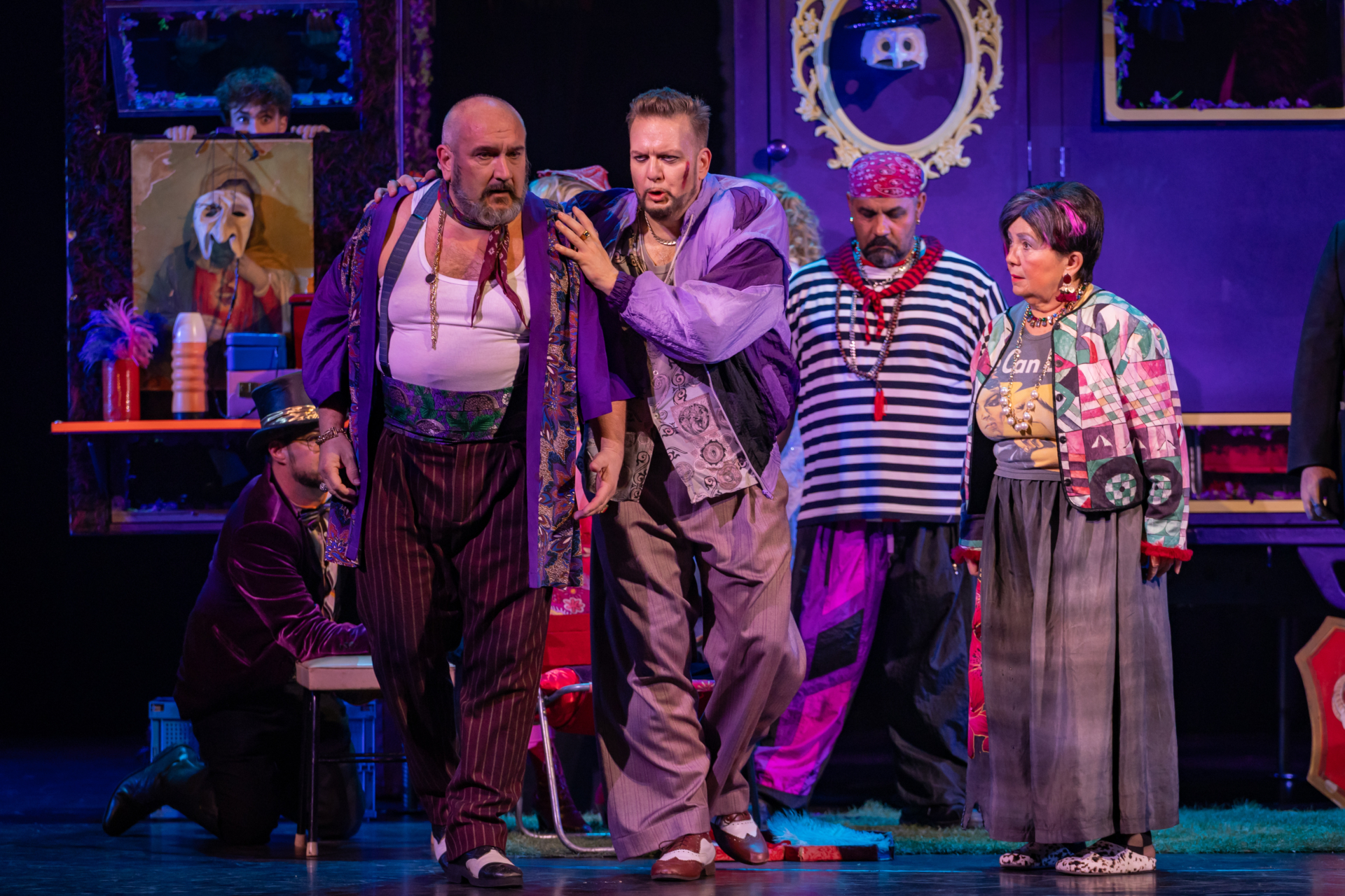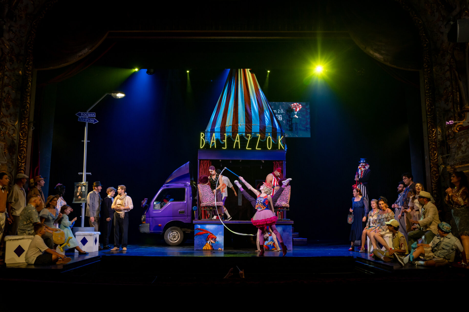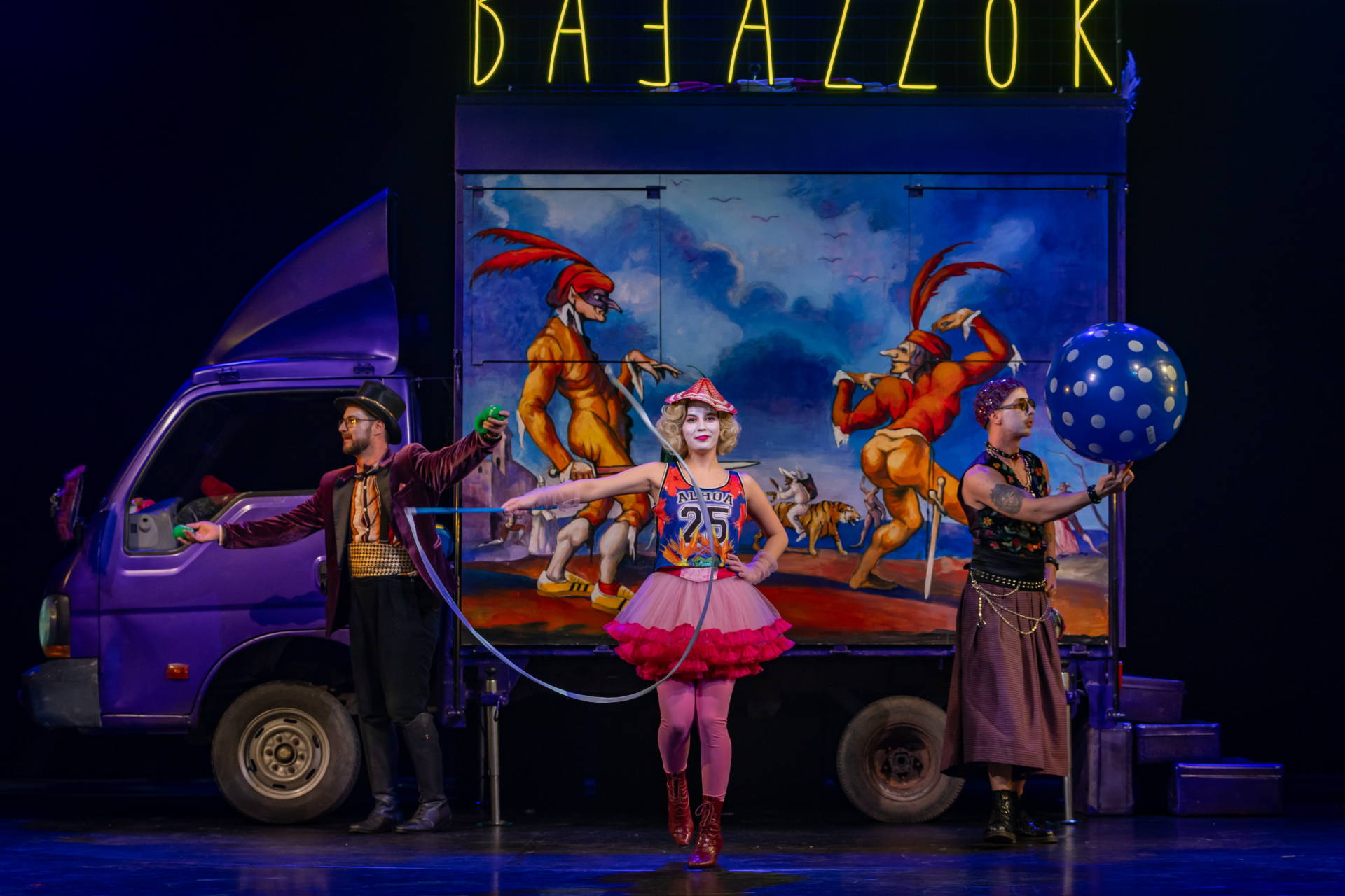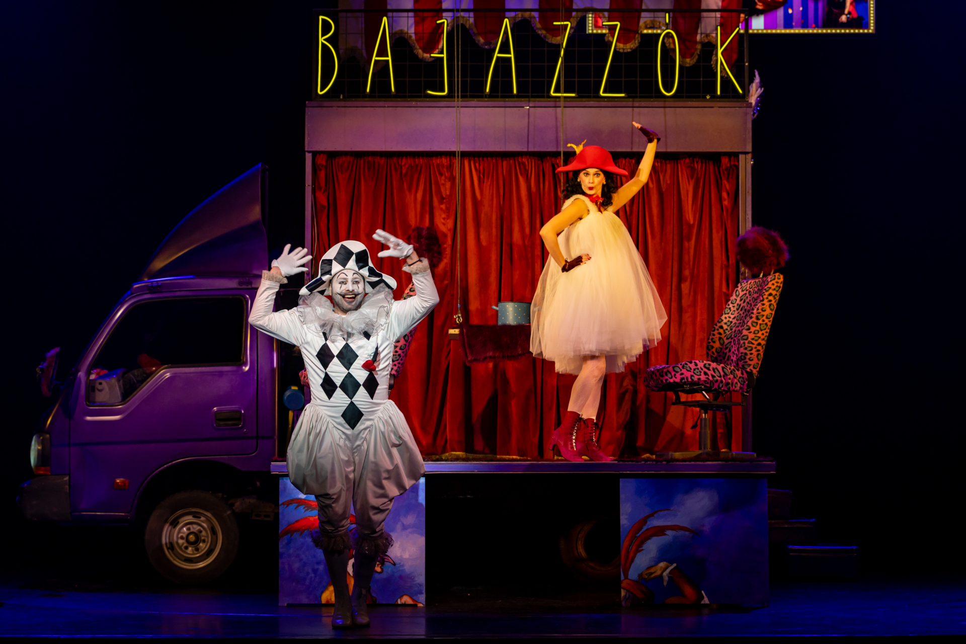 A közönség nevetve figyeli, ahogy a társulat komédiázik a megcsalt férjről, ám a játék lassan átalakul valósággá. A Bajazzó szerepét alakító Canio a szerep és a saját érzései közötti harcban elveszti önuralmát, és követelni kezdi, hogy Nedda vallja be, ki a szeretője. A nézők eleinte azt hiszik, ez is a szerep része, ám a hangulat végleg megváltozik, amikor Canio valódi dühe megfékezhetetlenné válik. Innen már csak pár hang, és a komédiának vége.